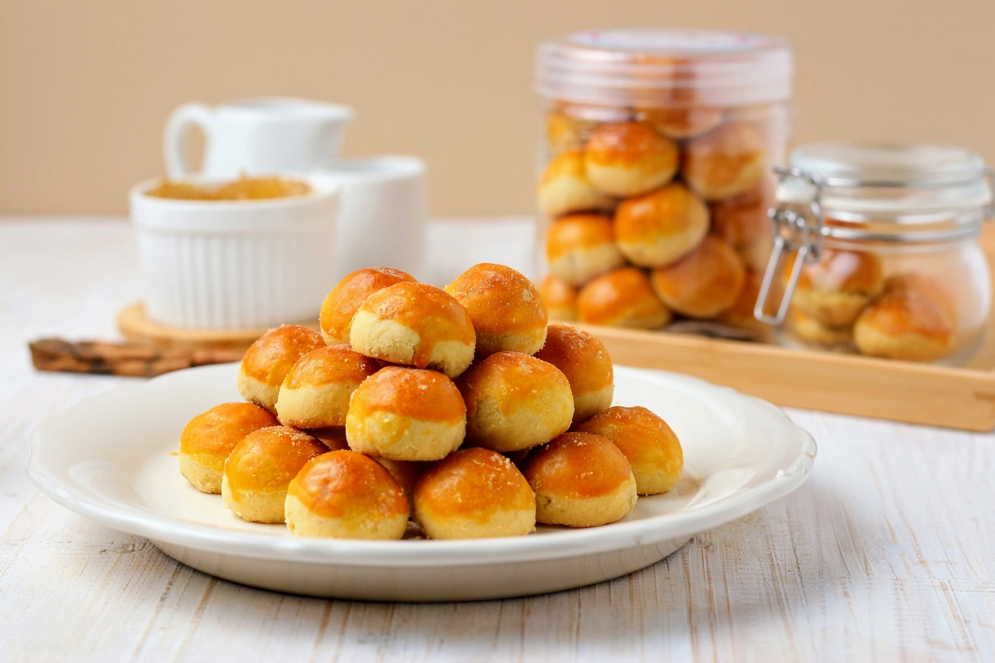 Nastar berasal dari kata ananas taart yang berarti kue nanas. Kue kering ini punya tekstur lembut, rasa manis-gurih, dan isian selai nanas yang segar. Awalnya, nastar dibuat simpel dengan bentuk bulat supaya mudah dibentuk dan dipanggang merata.