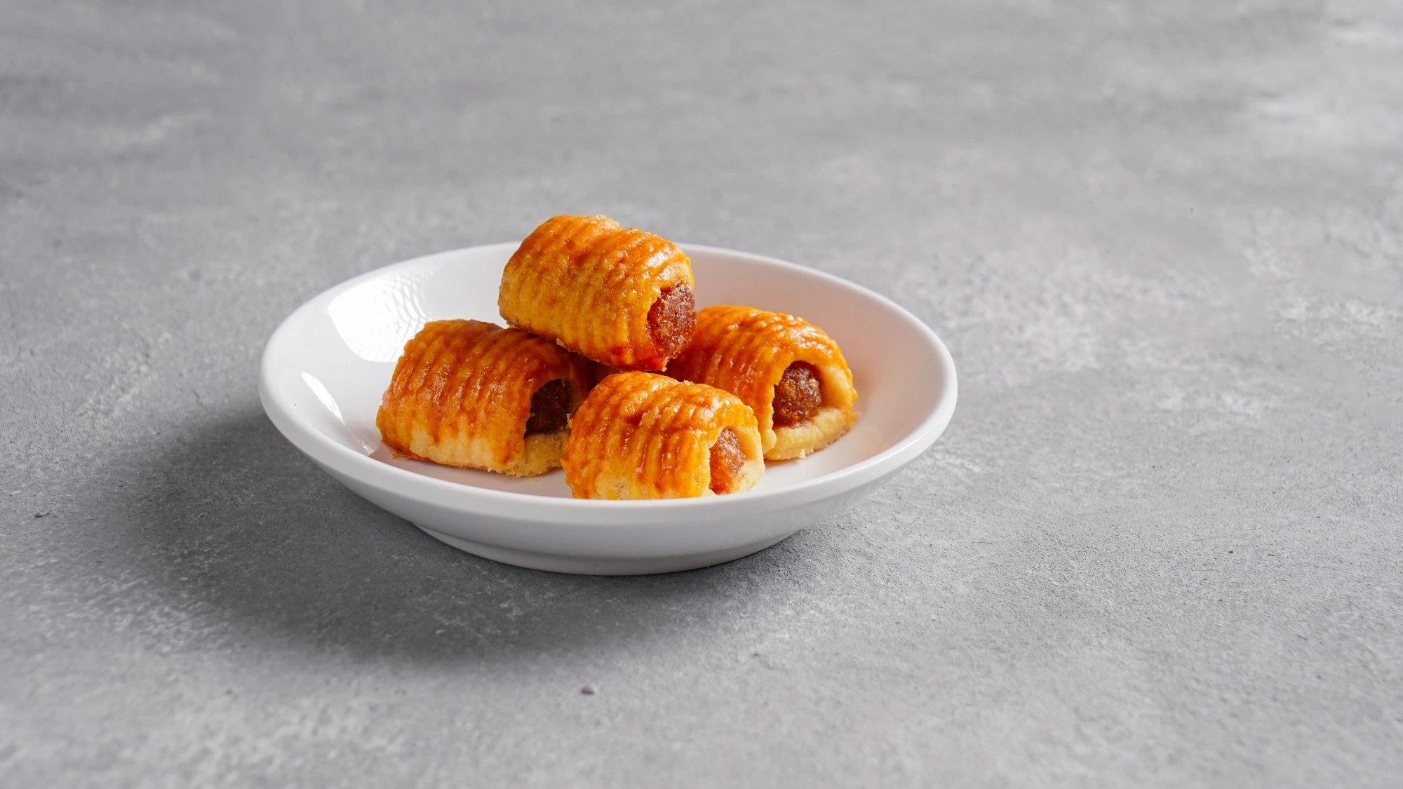 Bentuk nastar selain bulat yang satu ini simpel tapi beda. Adonan digulung memanjang dengan isian selai nanas di tengah, lalu dipotong-potong. Hasilnya rapi, mudah dibuat, dan cocok untuk produksi dalam jumlah banyak.