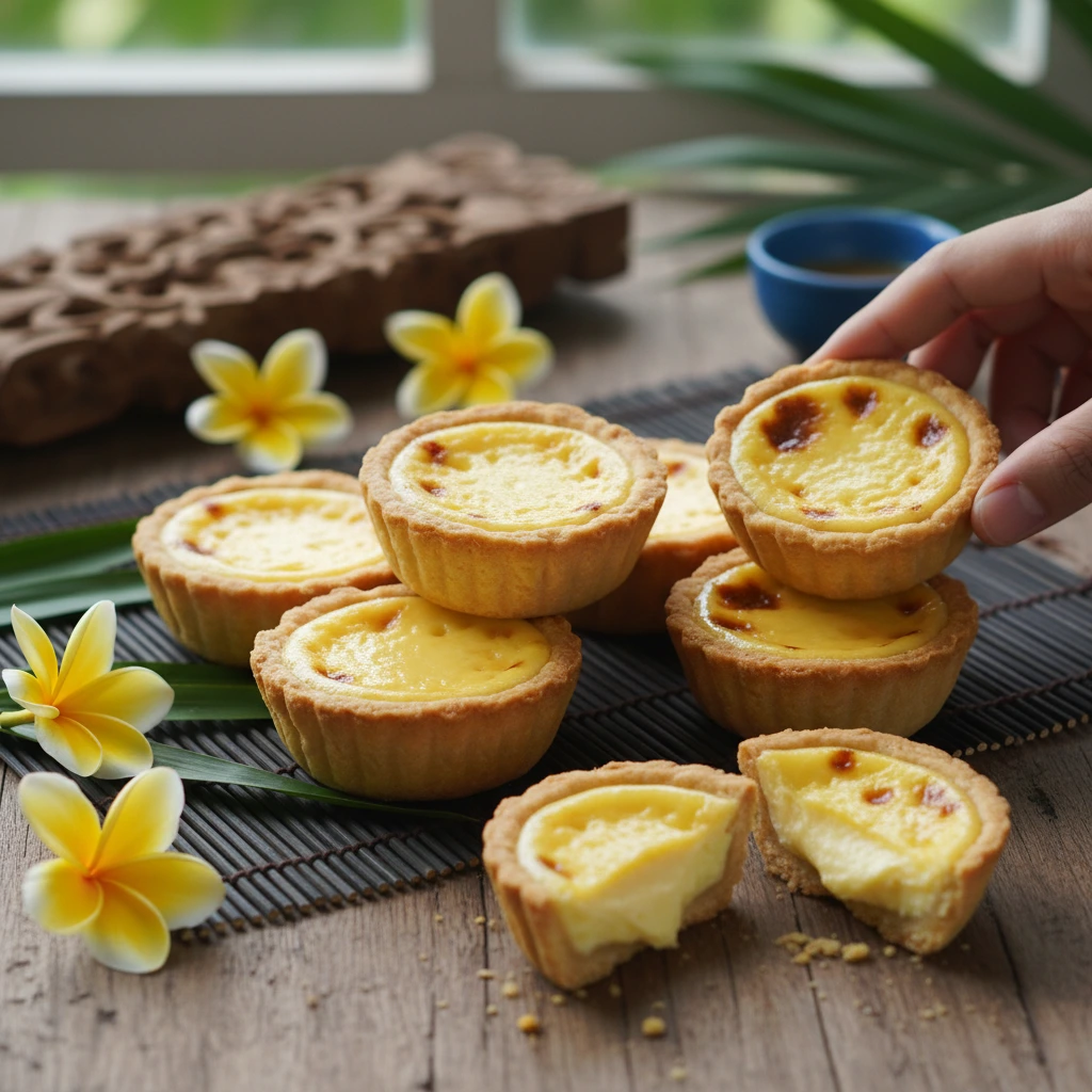 Meskipun lebih dikenal sebagai oleh-oleh dari Bali, kue sejenis pie susu ini sebenarnya punya akar tradisi yang kuat di Papua dengan nama Kue Lontar. Ukurannya biasanya lebih besar dari pie susu biasa. Dengan isian custard susu yang super lembut dan manis di atas kulit pai yang renyah, kue ini adalah hidangan penutup yang sempurna setelah makan besar di hari Natal.